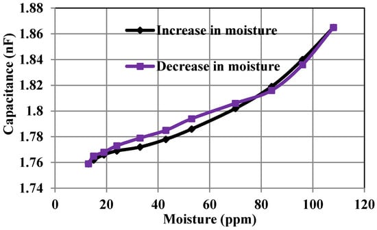 - Mahboob, M.R.; Zargar, Z.H.; Islam, T. A sensitive and highly linear capacitive thin film sensor for trace 173 moisture measurement in gases. Sens. Actuators B 2016, 228, 658–664. [Google Scholar] [CrossRef]