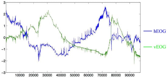 Examples of horizontal and vertical ElectroOculoGram (hEOG and vEOG) sequences in [10].