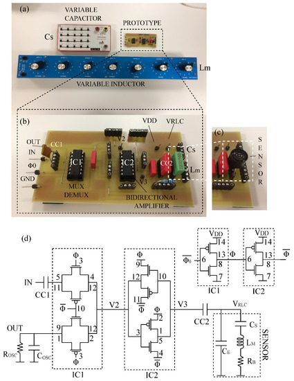 - Marchetti, L.; Romi, A.; Berg, Y.; Mirmotahari, O.; Azadmehr, M. A discrete implementation of a bidirectional circuit for actuation and read-out of resonating sensors. In Proceedings of the 2016 International Conference on Design and Technology of Integrated Systems in Nanoscale Era (DTIS), Istanbul, Turkey, 12–14 April 2016; pp. 1–5. [Google Scholar]