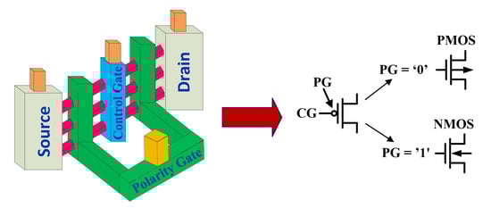 - De Marchi, M.; Sacchetto, D.; Frache, S.; Zhang, J.; Gaillardon, P.; Leblebici, Y.; De Micheli, G. Polarity control in double-gate, gate-all-around vertically stacked silicon nanowire FETs. In Proceedings of the 2012 IEEE International Electron Devices Meeting (IEDM), San Francisco, CA, USA, 10–13 December 2012; pp. 8.4.1–8.4.4. [Google Scholar]