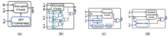 - Subramanyan, P.; Ray, S.; Malik, S. Evaluating the security of logic encryption algorithms. In Proceedings of the 2015 IEEE International Symposium on Hardware Oriented Security and Trust (HOST), Washington, DC, USA, 5–7 May 2015; pp. 137–143. [Google Scholar]