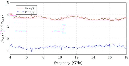 one can solve these equations for µr and εr, which actually yields the desired apparent figures. Measured data are visualized in Figure 13 for the elastomer sample described above. The relatively constant response of both parameters justifies averaging by taking the RMS values.