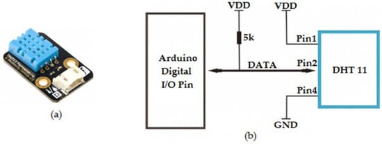 Temperature and humidity sensor. (a) DHT11; (b) circuit diagram.