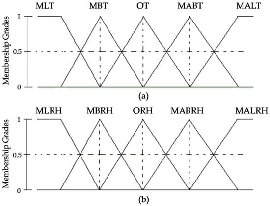 Membership ranges of temperature and relative humidity are determined by Equation (2) from the set point and the current value of the sensors.