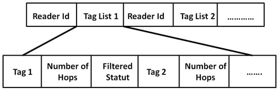Once extra-path duplication of all tags is filtered, the sink decides to request data from readers by sending a Request Messages. These messages will be based on the remained tag (associated to readers) in the sink list S after filtering. Thus, the sink sends a Request Message, whose structure is shown in Figure 8 to all readers. The payload of the Request Message includes a sequence of tag requested by the sink from readers. Each reader will only send data requested by the sink and will locally drop the rest.