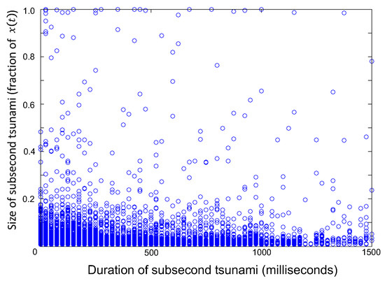 In this paper, we present a discussion of this topic based on a combination of a generic, binary model of heterogeneous, adaptive, autonomous objects with limited information and processing power, and recent subsecond data from these decentralized, all-electronic financial market exchanges. We focus on the important problem of how delayed information in such systems impacts their overall stability, in particular the appearance of sudden large changes at the system level akin to subsecond tsunamis. Such delayed information can arise either through poor individual information processing, an accidental shift in the latency of information transmission, or an intentional attack from the outside [10,11,12,13]. Much remains to be done in terms of developing formal mathematical results for this system, hence this paper should be seen as laying out a framework as opposed to solving this problem. However our preliminary results already show the type of impacts that can occur—in particular, in relation to the extreme subsecond shifts (tsunamis) which have been observed in financial market data. Such subsecond tsunamis are relatively frequent (Figure 1 and Figure 2) and yet are still not well understood. More generally, this topic of decentralized societal networks, in particular those based on financial activity, touches on a wide range of areas of interest to the electronics community, including communications and information processing, microwave and electronic system engineering, systems and control engineering.