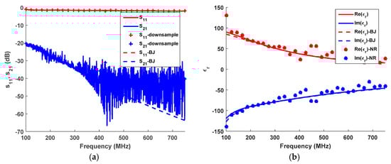It is worth highlighting that, if general and realistic dielectric permittivity and magnetic permeability models are selected, the number of parameters to be found increases with respect to the case of constant values. On the contrary, by recurring to causal models for the sample under testing, the dielectric permittivity and the magnetic permeability of a material can be characterised using only a few parameters. The most important models, widely adopted to describe the dielectric behaviour of materials, are provided by Lorentz and Debye. In this case, the iterative search consists of optimising the parameters of the causal models by matching the measured scattering parameters with those obtained from the simulations of the material. We will address this method as Backer–Jarvis (BJ) since a similar approach was presented by the author [36].