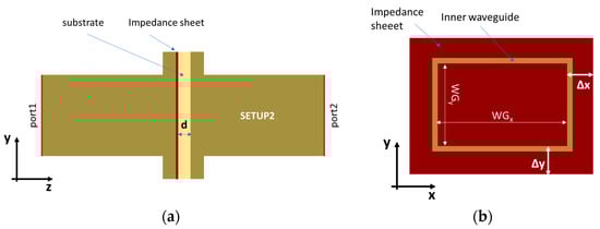Measurement setup simulated with Ansys Electronics v. 16: (a) side view; (b) front view.