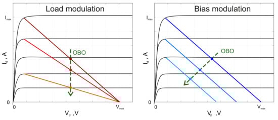 Load modulation and bias modulation principles. OBO: Output power Back-Off.