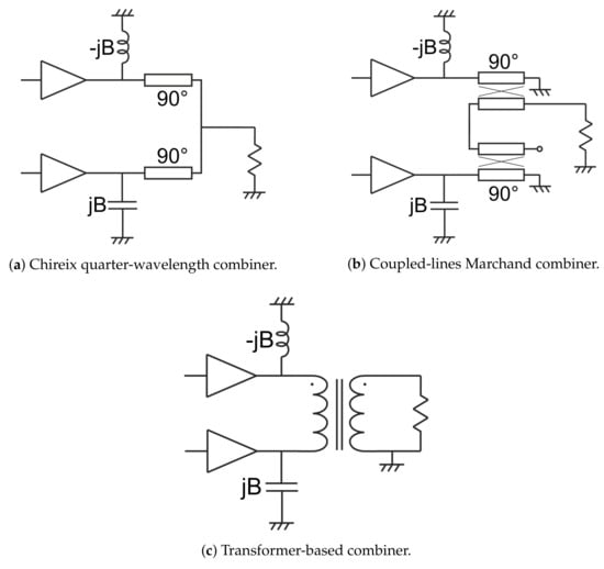 An effective method to reduce the limiting effect of the devices’ output capacitances is to account for them within the combining network [76]. This approach has the main advantage of minimizing circuit size, with noticeable bandwidth enhancements [27,46,58].