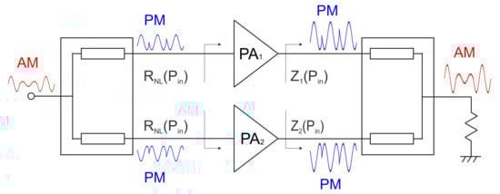 - Nunes, L.C.; Cabral, P.M.; Pedro, J.C. AM/PM distortion in GaN Doherty power amplifiers. In Proceedings of the 2014 IEEE MTT-S International Microwave Symposium (IMS), Tampa, FL, USA, 1–6 June 2014; pp. 1–4. [Google Scholar]