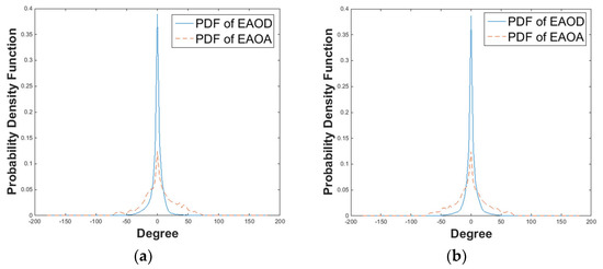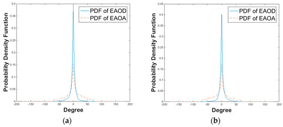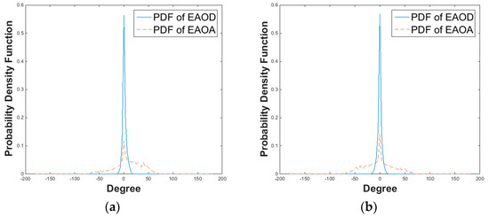 - For the PDF of EAoD: the logarithm exponent value λ′1EAoD is nearly unchangeable when the antenna height is lower than half of the building’s height, but has a dramatic increase when the antenna height grows. However, the logarithm exponent value λ′2EAoD enhances when the antenna height is lower than half of the building’s height and then remains stable.