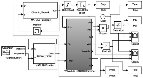 A block diagram of the neurocontroller-plant system is shown in Figure 9. In the model of the plant, the output signal is the power of the PV module, while the input signal is the percentage of duty cycle that is applied to the pulse width modulation (PWM) signal of the dc-dc converter.