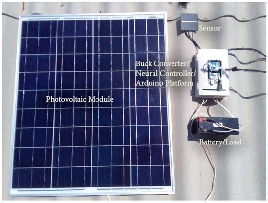 Figure 17 shows the PV system, which consists of the PV module, sensor with a static neural network, battery, buck converter, and Arduino neural controller. Figure 18 shows in detail the components used for the buck converter.
