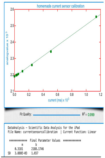 A 4-motor chassis was used as the base for the hardware of the rover. This chassis consisted of four individual brushed DC motors. The motors were connected to the drive wheels in a 1:120 gear ratio. This setup allows for sufficient torque to carry the load of two separate power systems. The entire rover weighed 2.25 kg. Table 1 provides the weight distribution of the rover. In order to model the energy system that is present in living organisms, a substantial power store was required. This store was split between an SC bank and a Li-ion battery pack. The rover was tested in several stages with different setups and configurations regarding its hardware and software. Initially, the rover was fitted with six 2.7 V 400 F supercapacitors wired in series-parallel to create a 5.4 V 600 F supercapacitor bank. As per the dimensions of the motor chassis, six was a reasonable number of supercapacitors that could volumetrically fit on the rover. An additional six 3.7 V 18,650 lithium-ion batteries were wired to create an 11.1 V lithium-ion battery pack. The Particle Photon was used as the MCU for the rover allowing for internet connectivity for data reporting. The voltage of the panels, SC bank, and Li-ion pack were measured using voltage dividers fed into the board’s analog to digital converter (ADC) pins. The live-current draw of the rover was more of a challenge and required the use of a modified A1302 analog magnetic Hall effect sensor fitted with a toroidal coil wrapped in magnet wire creating an inductor coil, which was wired in series with the power input of the rover and the primary power buffer. As the magnetic field is generated by current flow Bcenter = μoI/(2a), the Hall effect sensor provides an analog value proportional the B value. It had to be calibrated to report current accurately in amperes and is shown in Figure 1 and Table 2. While the rover was operating, both voltage and current data were reported live to a Ubidots web server via the cloud connection. The system was designed to operate both autonomously and controlled in order to increase the versatility of the rover. Testing was done under both operating systems to validate the effectiveness of the algorithm designed to seek out and manage power use, as opposed to manual control. Considering that the aim was to also demonstrate the effectiveness of supercapacitors as the primary power buffer for a motorized mobile electronic system, the manual tests are equally valid. The manual control was done using an external RC module with a corresponding drive controller. The transition between power buffers remained autonomous through every test and configuration as the ADC reads merely for a threshold low in the SC and panel voltage to trigger the onboard relay to switch to the secondary power buffer.