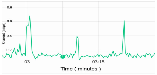 Utilizing an SC bank as the primary power buffer of the wireless rover provides, most importantly, an extended number of charge cycles allowing the rover to stay on and usable for extended periods of time without human intervention. To determine the effective lifespan of the rover, tests were completed in different sunlight conditions to determine the distance that the rover could travel. The goal is to create a rover with a power system capable of allowing the rover to drive continuously while relying only on the irregular windows of sunlight available. The first test to help quantize the designed rover’s abilities was a raw distance test. For this test, the intent was to measure the amount of energy required to move the rover a specific distance. By essentially calculating the force produced by the rover, the internal energy stored in each of the buffers could be used to determine how many meters the rover could travel using that stored energy. This test was executed on a flat surface of 3 m with the rover under manual control. An external microcontroller circuit with a laser diode and a laser light sensor was used to measure an accurate time for the rover. This time was used to approximate the Integral current dx, which yields the total charge in coulombs. This value combined with the average voltage during each test provided the energy in joules by E = QV. During each test, the rover was manually driven across the 3 m surface in a straight line and voltage measurements were made before and after each test to determine the average voltage. The rover itself transmitted live current values (see Figure 1). The average velocity of the rover was measured and recorded during each test.