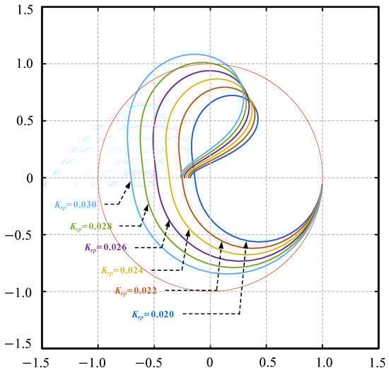The stability of Gerp(z) is influenced by Krp and L. In the z-domain, all poles of the loop-gain should be placed in the unit circle for guaranteeing the control stability. According to the small gain theorem, it is concluded that H(z) is stable when is smaller than the unity []. Figure 10 compares the root loci of H(z) up to the Nyquist frequency at different Krp. It can be confirmed that the stability is guaranteed when the Krp is 0.026 or less.