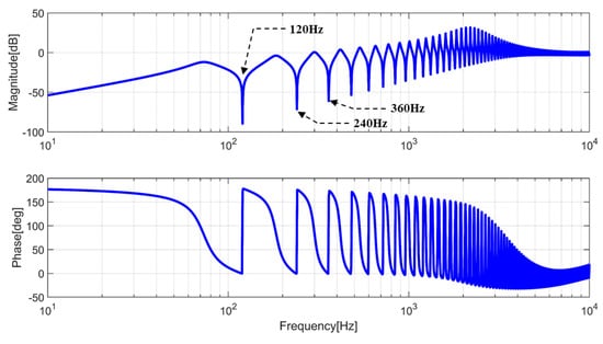 Figure 11 shows the loop-gain of the proposed controller using the previously designed parameters. As known from Figure 11, the frequency response of Ge(z) has notches in multiples of 120 Hz. This means errors at the even harmonics in the SRF are effectively mitigated with the proposed control repetitive control scheme.