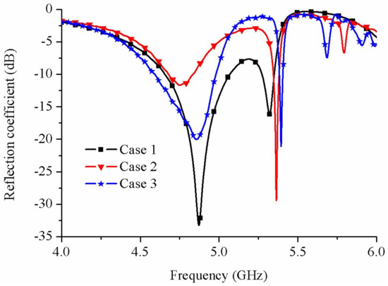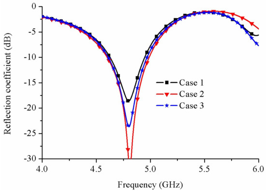 Simulated reflection coefficients with d = 2 mm for the three cases.