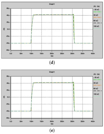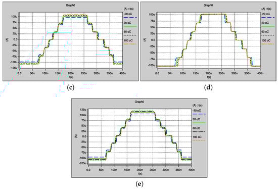 Temperature variations of the proposed PWL function in time simulation to generate seven-scroll: (a) TT; (b) SF; (c) FS; (d) SS; and (e) FF corner.