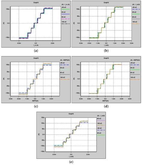 Temperature variations of the proposed PWL function in DC to generate seven-scroll: (a) TT; (b) SF; (c) FS; (d) SS; and (e) FF corner.