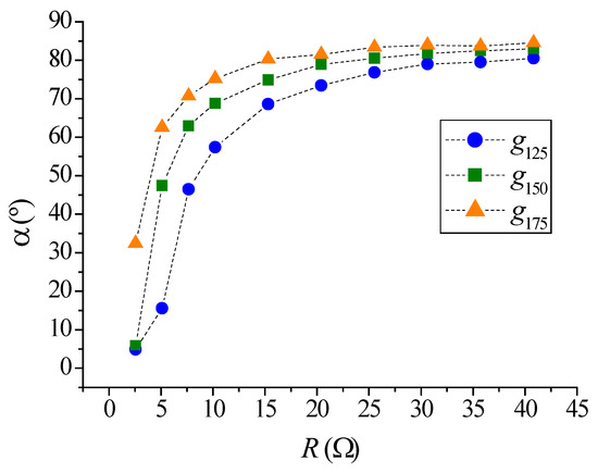 As a consequence of this gradual convergence process, the rate at which changes has a non-linear dependence with R: a given increment in R makes undergo a significant increase in the area of small loads; however, the same increment causes only a moderate increase in for large loads. Although this holds for the three , the effect becomes more pronounced as the air gap increases. Note that the cosine function in (10) accounts for the non-linear behavior observed.