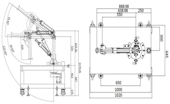 The schematic design of an end effector is displayed in Figure 3 and the schematic diagram of a hydraulic servo system’s base and secondary link is shown in Figure 4.
