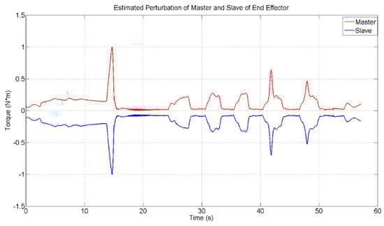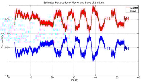 Figure 20 shows the normalized estimated perturbation for master and slave of the 2nd link. The red line shows the normalized estimated perturbation of the master device, whereas the blue line shows the normalized estimated perturbation of the slave device.