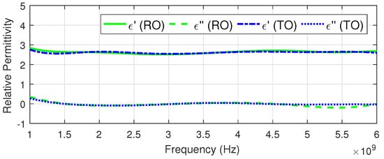 Note that our extraction described in Section 2.2 differs from those introduced elsewhere [32,41,42,43,44] in a way we do not use the reverse path ( and ), since it would demand the metal plate to be positioned also on the bottom face of the sample in order to perform the calibration. It would require an additional repositioning of the sample, which is, as explained, a source of errors.