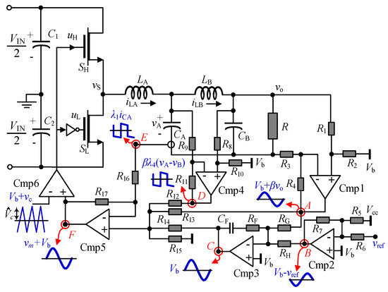High switching frequency necessitates the analog implementation of the controller using low-cost, single-supply opamps.