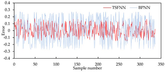 The training results of TSFNN and BPNN are shown in Figure 8 and Figure 9 respectively, and the error comparison results of the two models are shown in Figure 10.
