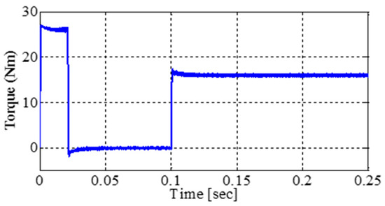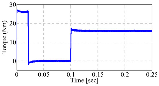 In recent years different authors have proposed different approaches to mitigate these challenges. One such solutions introducing two extra current loops is reported in [12]. These extra current loops are introduced for the currents of Z1Z2-subspace, i.e., IZ1 and IZ2 are put into the closed feedback loops and controlled by the conventional PI controllers. The control diagram for four loops control is described in Figure 11. Based on the arrangement depicted in Figure 11, a Matlab-based simulation was built, and four loop control was verified. Similar parameters (as discussed for two-loops) under the influence of four loop current control were used, and the results are highlighted in this section of the paper. Figure 12 represents the load currents; it can be observed from the result that Id was set to zero, and also, at 0.1 s, rated torque was applied to the machine and it started taking the rated current. Some supporting results include the electromechanical torque and speed represented by Figure 13 and Figure 14 respectively. Likewise, in Figure 15, the phase currents of winding set ACE were obtained. It must also be observed that these results are obtained at full load and rated speed.