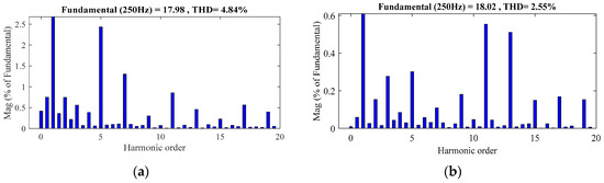 FFT Analysis of phase current A: (a) with two loops current control (b) with four loops current control.