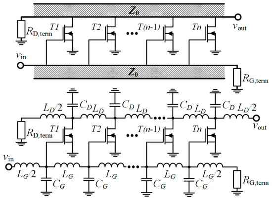 - Green, M.M.; Pisani, M.B.; Dehollain, C. Design methodology for CMOS distributed amplifiers. In Proceedings of the IEEE International Symposium on Circuits and Systems (ISCAS), Seattle, WA, USA, 18–21 May 2008; pp. 728–731. [Google Scholar] [CrossRef]