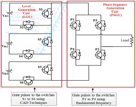 Figure 7 depicts the DCLCHB inverter topology for the generation of a single-phase seven-level output voltage waveform. It is composed of LGU and PSGU [12].