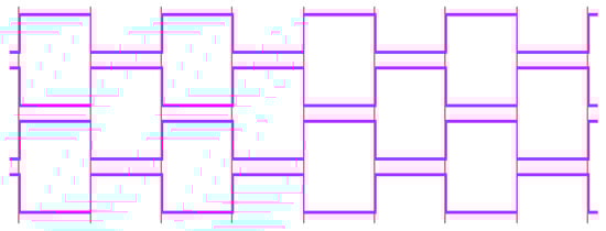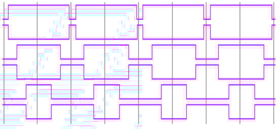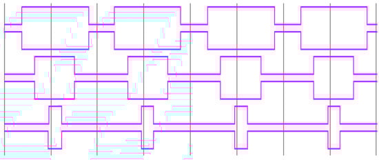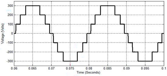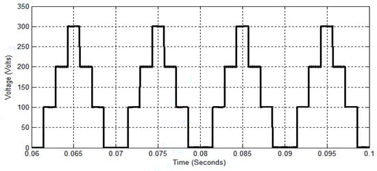 CAD techniques are a vital part of any inverter since they are directly related to the efficiency of the entire system [6,12]. It is used to control the proposed DCLCHB inverter output phase voltage and also for the calculation of the two main parameters such as %THD and Vrms. In this paper, a step pulse wave CAD (SPWCAD) technique has been employed to trigger the switches of LGU in the DCLCHB inverter and is compared with a conventional CAD technique, i.e., equal-phase CAD (EPCAD) technique. The generation of the seven-level stepped voltage waveform using CAD techniques is shown in Figure 8.