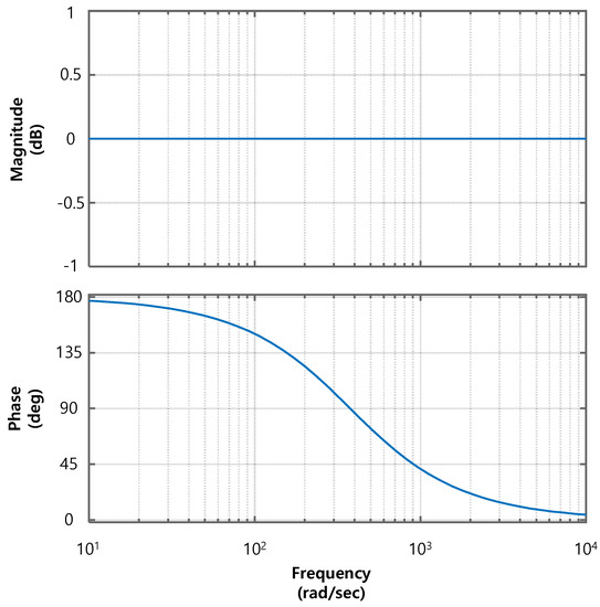 Figure 3 shows block diagrams of the proposed control methods for the battery charging and compensation of the reactive power. To control the active and reactive powers independently, the grid voltage and current should be expressed in a stationary reference frame. The d-axis voltage and current are equal to the grid voltage Egrid and inductor current iL, respectively. Furthermore, the q-axis voltage and current, which occur using an all-pass filter (APF), are 90-degree delayed signals compared with the d-axis voltage and current. The APF is a signal processing filter that passes all frequencies without changes in magnitude but produces 90-degree phase delay as shown in Figure 4. In this paper, the digital APF is applied using the bilinear transformation method. The transfer functions of an APF on a complex plane and a digital APF using the bilinear transformation method are expressed through the following equations: