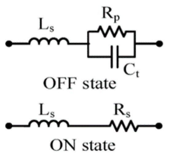 RLC model of the switches in the ON and OFF configurations.