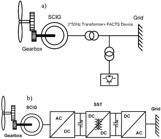 Integrating a squirrel cage induction generator (SCIG) to the grid: (a) typical; (b) using SSTs [29].