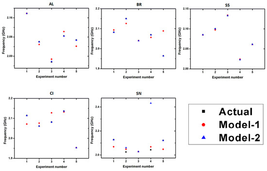 Comparison of actual and estimated resonant frequency using Model-1 and Model-2.