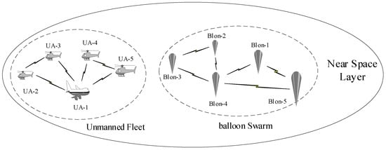 (Near Space Layer Information System). The backbone networks of SIN are composed of satellite systems. However, the satellite systems cannot achieve all-weather, large-depth, and full-coverage. Therefore, it is necessary to rely on the Near Space layer aircrafts, including UAVs and HABs, to achieve the construction of the Near Space layer information system. The Near Space layer is convenient for its condition, so the construction of Near Space layer information system is more flexible and more formal. The composition structure of the Near Space layer information system is shown in Figure 3.