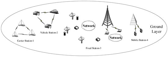 (Ground Layer Terminals). In accordance with the original intention of the construction and development of SIN, it is mainly based on the space platforms to achieve information acquisition and processing as well as the task of information assurance. Therefore, the main tasks of the ground terminals are to maintain and manage space entities. We believe that the Ground layer of SIN is mainly composed of the following types of terminals: fixed-based stations, hand-held mobile-based stations, vehicle-based stations, and carrier-based stations. The composition structure of the Ground layer terminals is shown in Figure 4.