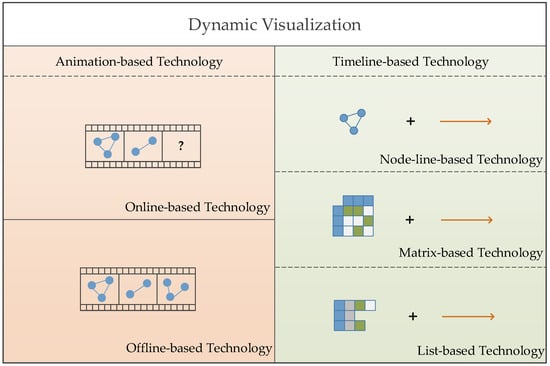 Similar to other visualization technologies, there are some basic functional and performance requirements for dynamic visualization and visual analysis techniques. On the one hand, it is necessary to meet the basic aesthetic criteria throughout the visualization process []. On the other hand, the user’s mental map must always be maintained []. Meeting the above functional and performance requirements are the criteria for evaluating the effectiveness of the visualization.