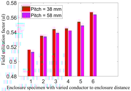 Field utilization factor comparison regarding varying pitch sizes of line enclosure.