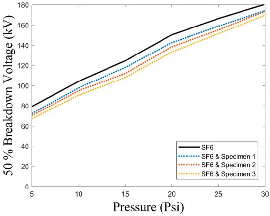 7.2. Synergistic Breakdown Characteristics of SF6 and Open Cell Foams