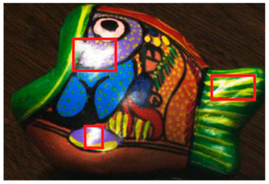 Based on the dichromatic model, Ren et al. defined the illumination chromaticity [11]. They estimated illumination chromaticity from a novel idea of color line constraint to remove highlight from an image [11]. In Figure 1, we mark three highlight areas where the dynamic range of the object is considerably low due to severe illumination. Our primary objective is to remove the highlights and recover the missing information, which results in local improvement of the dynamic range and enhanced global visibility of the image.