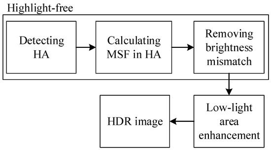 We experimentally set this condition. For all test images, it detects the HA properly. We detect the HA to work with only that region. We assume that other parts of the image contain properly diffused pixels. In the HA, we modify the highlight pixels by Equations (4) and (5). We call this image as MSF image.