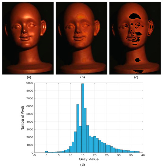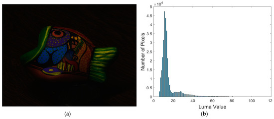 Most HF images have a histogram distribution similar to in Figure 4b. Thus, according to Hsia et al. [14], we can conclude that these images are low light images. After increasing the brightness of these low light images, we can claim these images as HDR images. Huo et al. [28] followed the same approach to achieve the HDR images, while they used the linear expansion method. Instead of linear expansion, we follow the algorithm of Li et al. [38]. They showed the following equation to brighten the under exposed region. We use Equation (8) for producing our final HDR image, . The specialty of Equation (8) is that it will boost up in the dark region only while keeping the higher luminance value intact.