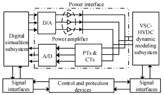 The topology of a voltage source converter-high voltage direct current (VSC-HVDC) system is evolving gradually from the monopole to the pseudo bipolar, and then the newly true bipolar, to accommodate the ever-increasing capacity of the electric power to be transmitted [1,2,3]. The dynamic behavior of an MMC-based bipolar VSC-HVDC system, which is characterized by a large number of power electronic devices and more diversified operation modes, is so complicated that it is hard to predict accurately with a pure digital simulator [4], thus this urges the development of a digital-physical hybrid simulation (DPHS) system [5,6].