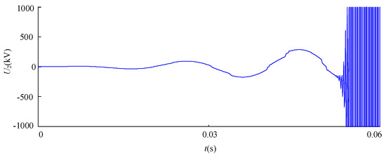 Substituting R2,min = 0.1125 Ω, L2,min = 0.058 H and ω = 100 π into Formula (14), we can obtain R* = 35 Ω, and the physical subsystem voltage U2 for our improved power interface unit model is shown in Figure 8.